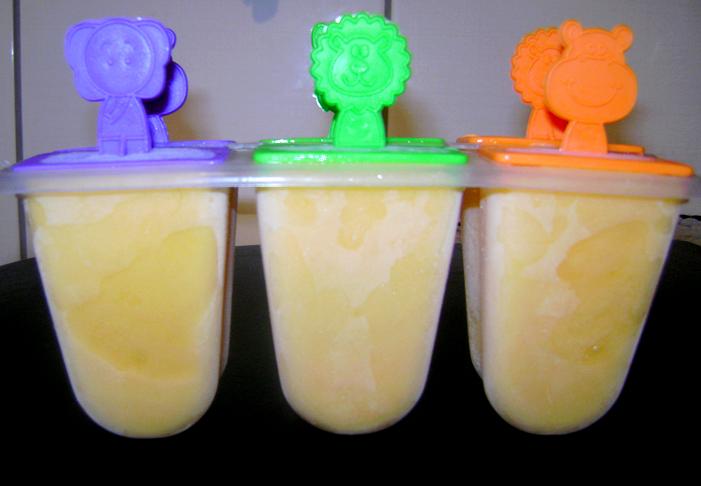 Mais um post dedicado ao meu filho!!! Comprei essas forminhas (que são uma graça) numa dessas lojinhas que se vende de tudo a partir de $1 real, quando surgiram comprava qualquer coisa por $1 real hoje em dia encontro todos os preços menos coisas de $1 real . . . Enquanto não tenho a minha sorveteira, vou me virando com os picolés, e como as mangas estão super doces, resolvi fazer picolés de manga.